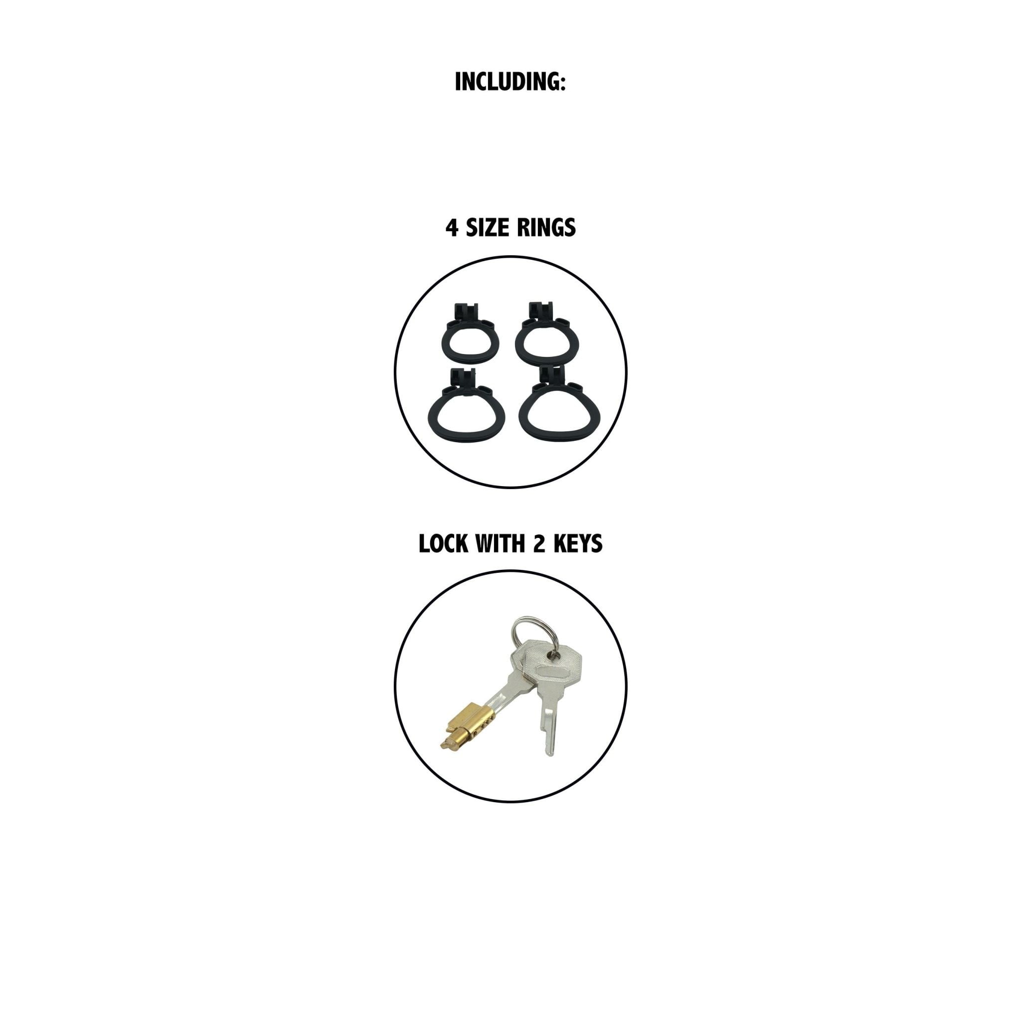 The package also includes 4 sizes of connecting rings, allowing the cage to be precisely adjusted to the wearer's anatomy for a secure but comfortable fit. The right size is the key to safe wear and an intense experience.