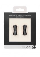 Black nipple clamps Ouch! Balance Pin squeeze (not only) your nipples tightly thanks to a strong magnet. You can put the clamps in the freezer to cool them down, or in a bowl of hot water to heat them up – giving your nipple teasing a surprising new element that escalates your passion to the max. The clamps are made of aluminium, completely body-safe, hypoallergenic, easy to clean. The package contains 2 clamps.