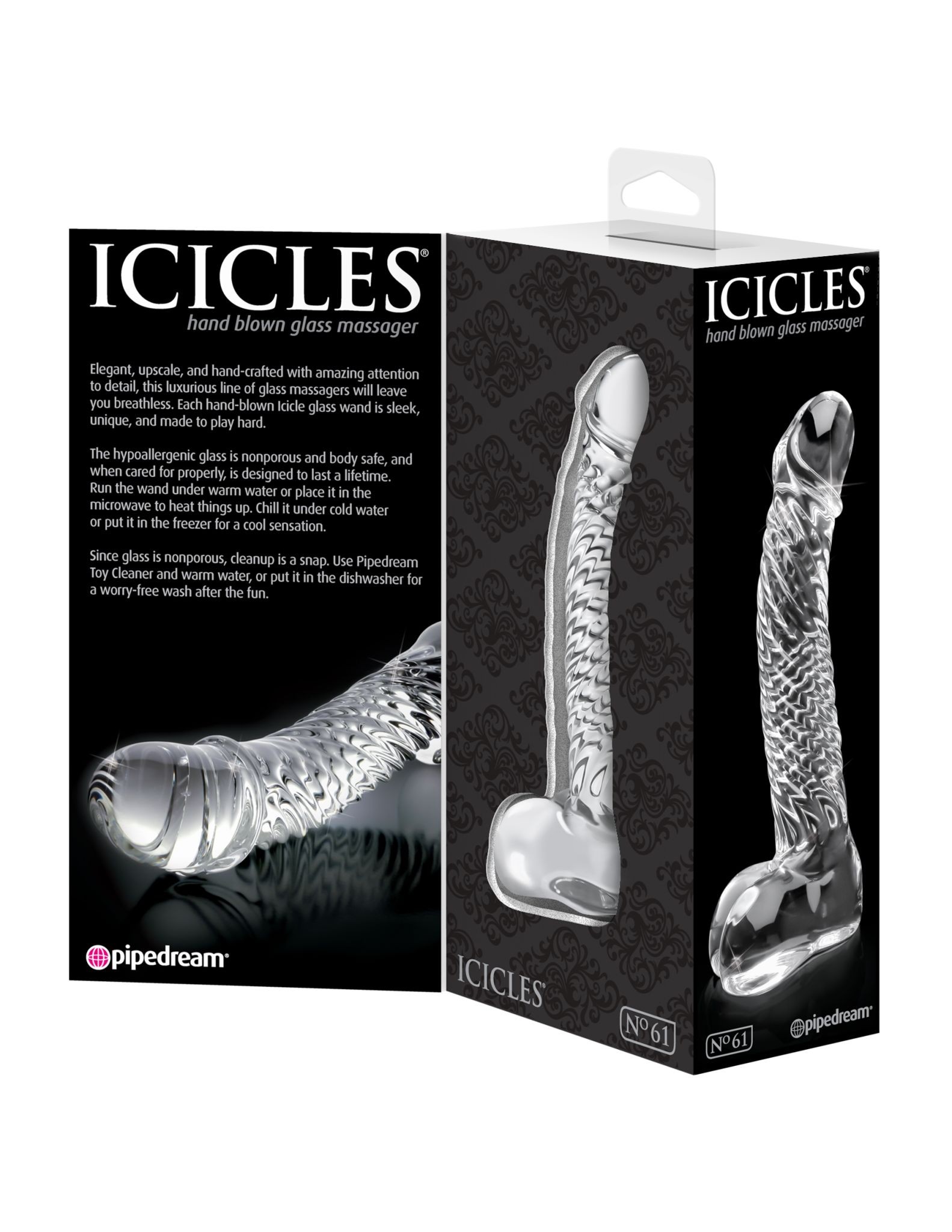Beautiful, elegant, hand-crafted with attention to the smallest detail – this is the Pipedream Icicles No. 61 dildo. The perfectly curved glans will stimulate both the female G-spot and its male alternative, the P-spot, and the testicles provide a realistic experience.