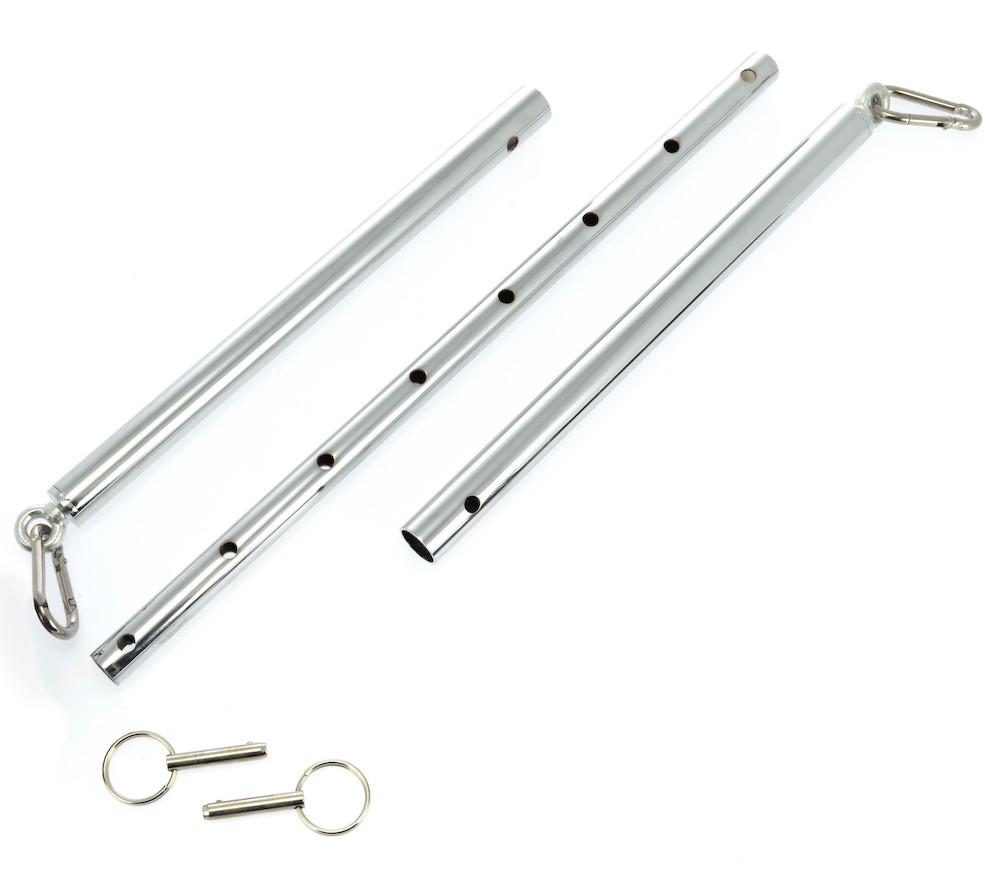 Tie your slave so hard he won’t forget. The bar will spread his legs so wide that his butt will be just under your control. The length can be easily adjusted by two stoppers from 60 to 90 cm. There is a carabiner on each end making it simple to connect the cuffs. More Information