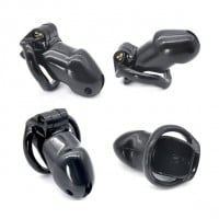 The chastity cage consists of a cock cage and four cock rings of different diameters. It is made of black ABS plastic, which is very light, strong, durable, hypoallergenic and phthalate-free. Don’t let the padlock bother you – this cage easily hides the small metal lock inside.