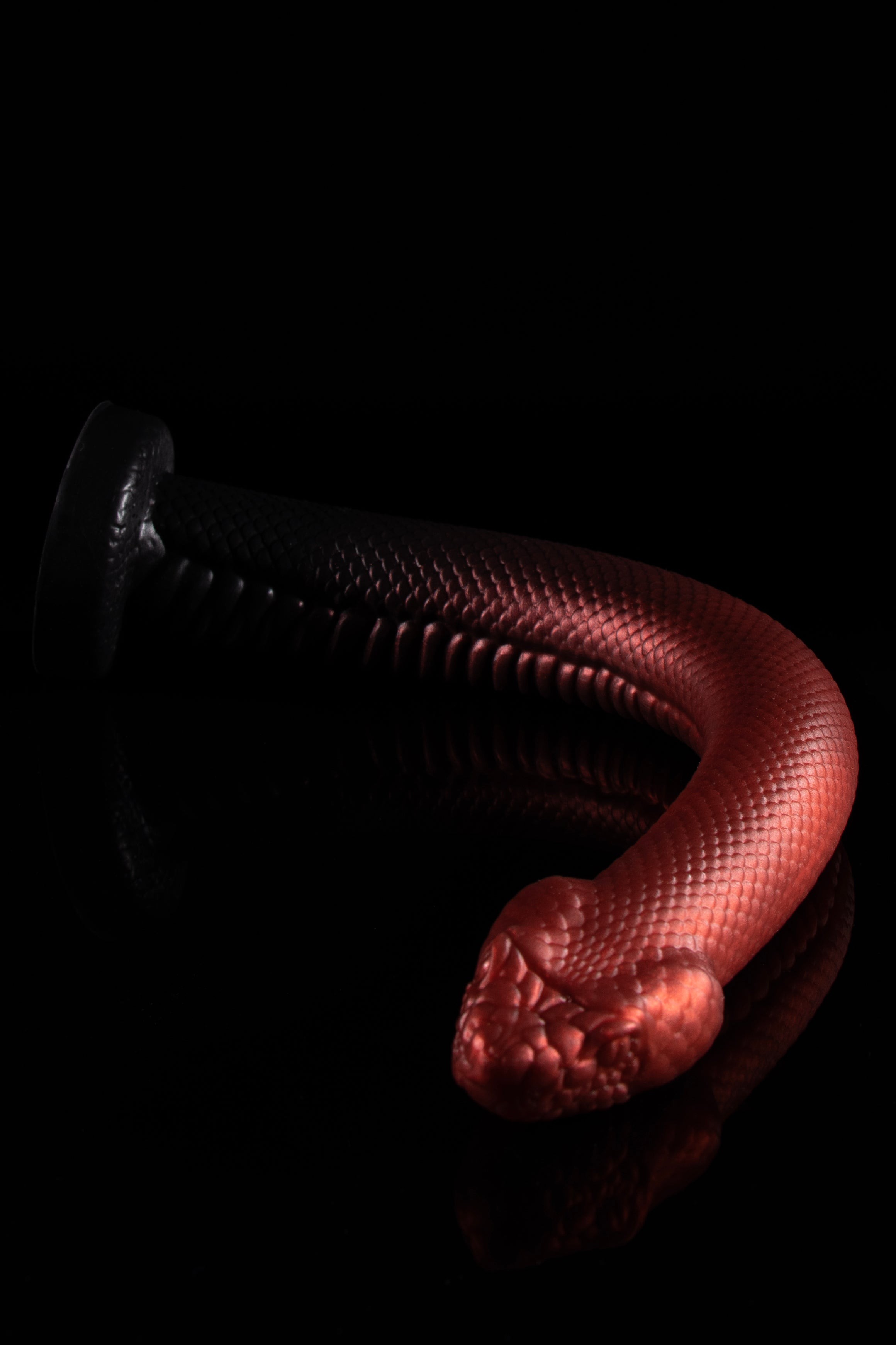 Submit to sin as the scaly snake, with its richly textured belly, stretches both your rings until it settles deep inside you.